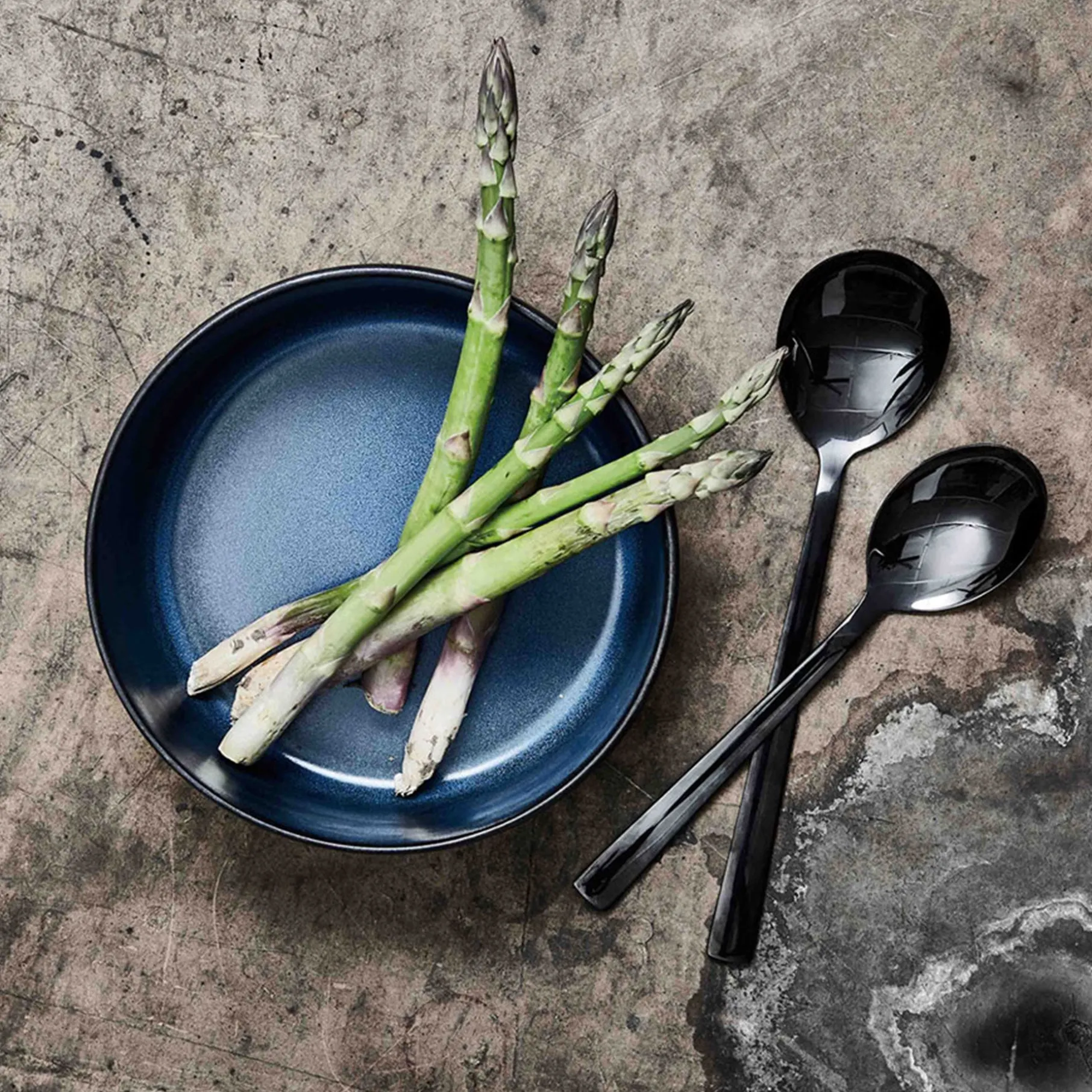 Smuk skål der er inspireret af nordlyset med sit fine spil af blå og grønne funklende prikker. Den dybe og mystiske blå farve er en hyldest til den skandinaviske og unikke natur. Den håndlavede skål er i dobbeltbrændt stentøj i høj kvalitet og kan derfor være en del af borddækningen år efter år.