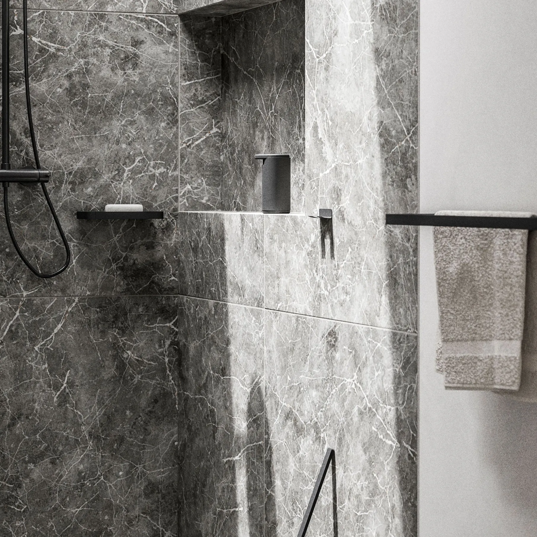 Indret med denne enkle og smukke sæbedispenser fra Rim-serien fra Zone på badeværelset.