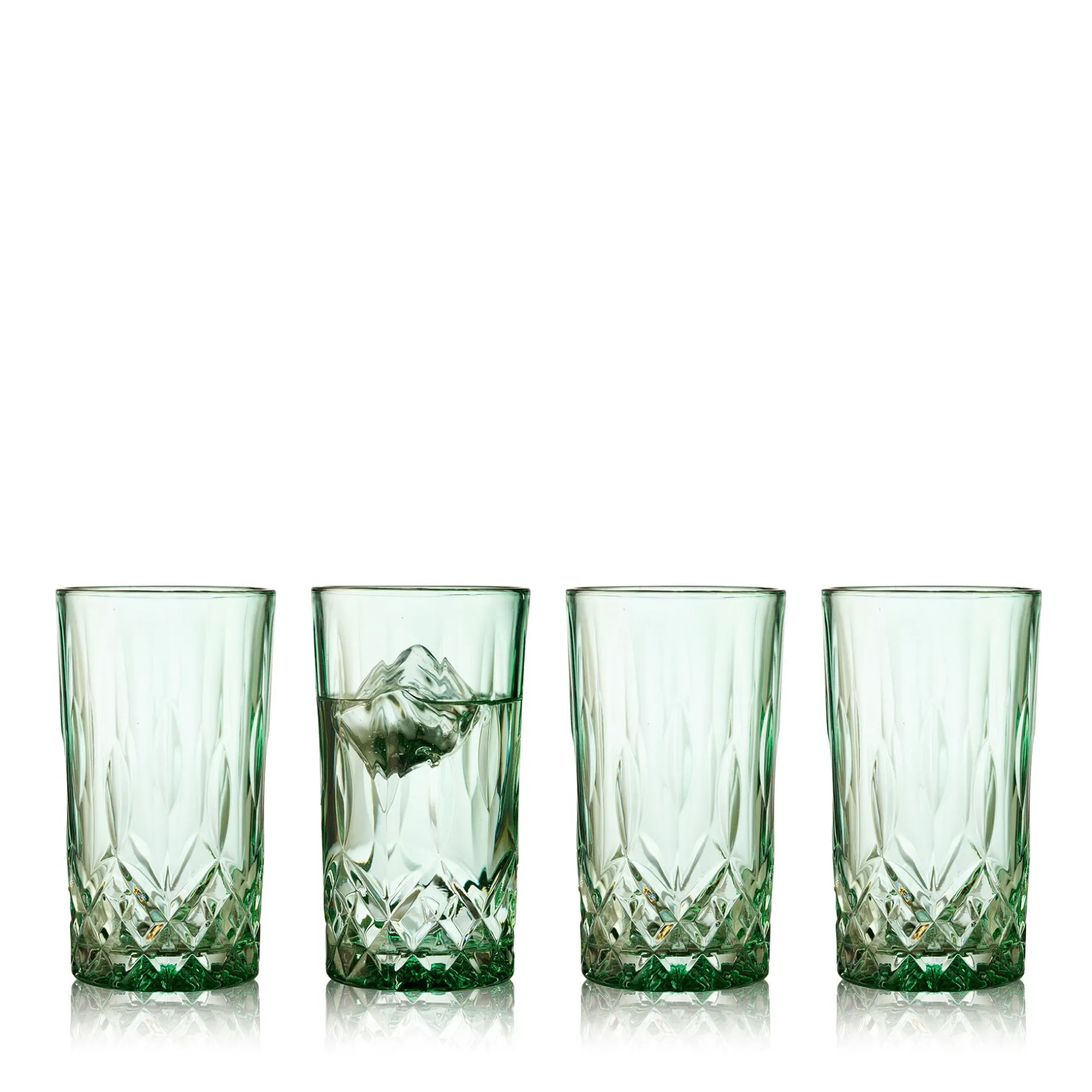 Smukke highballglas fra Sorrento-serien, der med deres grønne, gennemfarvede glas og flotte facetter, skaber de en smuk og elegant stemning på enhver borddækning. Glassene er perfekte til både vand, juice og longdrinks og deres design giver mulighed for at lyset kan spille både i glasset og indholdet. Dette løfter sanseoplevelsen og gør drikkeoplevelsen endnu mere eksklusiv.