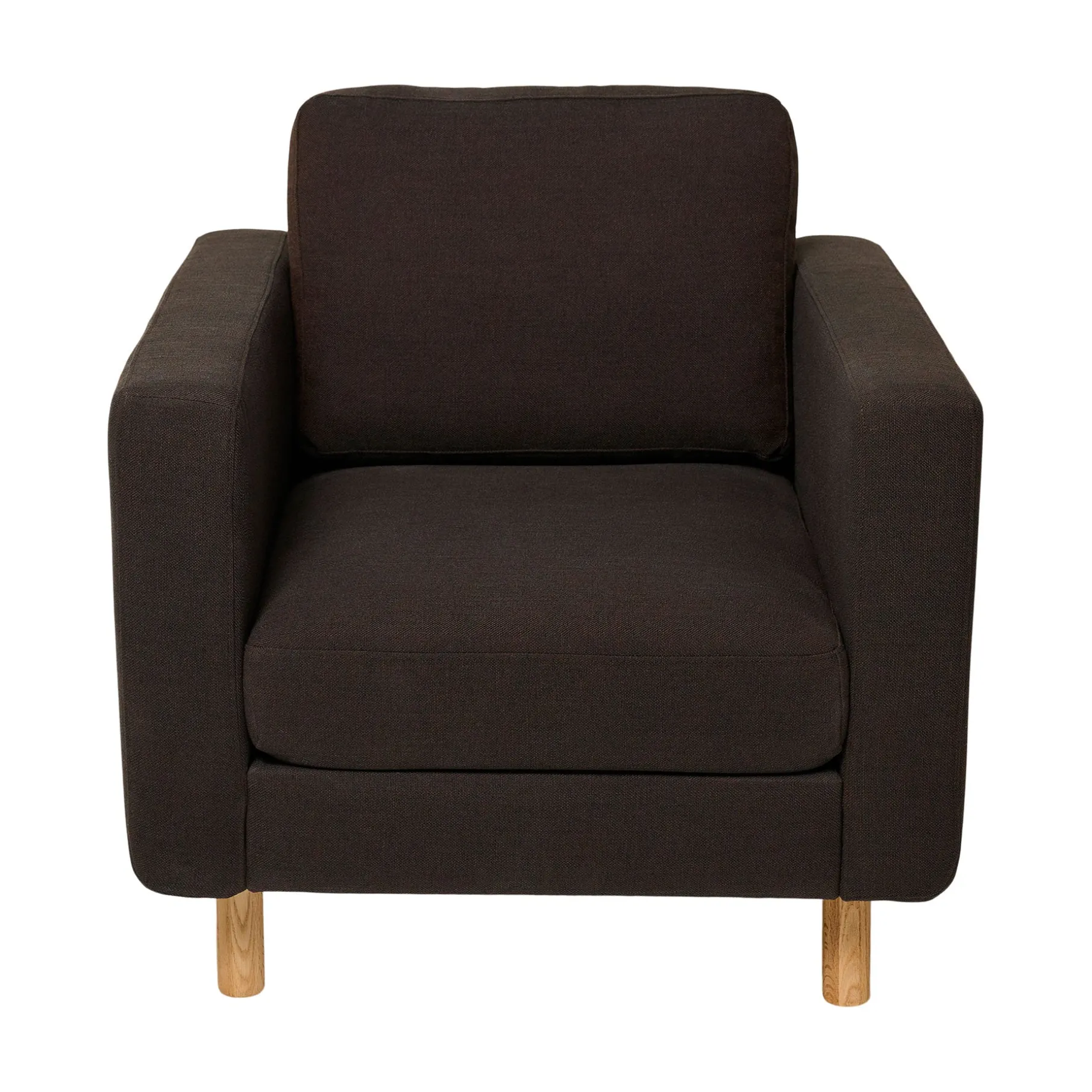 Loungestolen har olierede træben, som er udført i massivt egetræ. Den er betrukket med et materiale som består af 100% polyester, som både er praktisk, meget slidstærkt og holdbart med en martindale på 100.000.