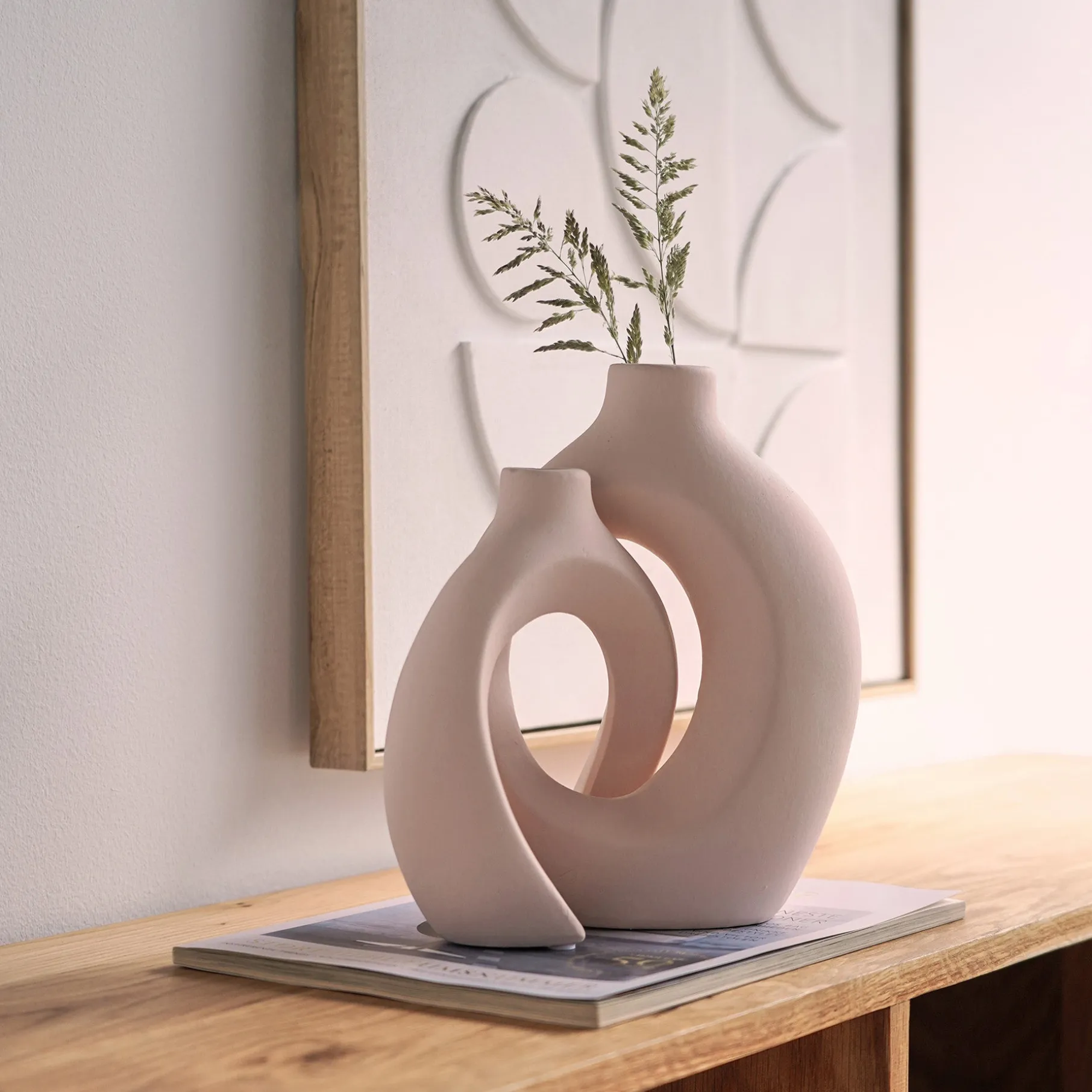 Synergy I vasen forener moderne design og organisk form i ét enkelt udtryk. Med sit karakteristiske hul i midten og bløde linjer fungerer den både som vase og som et skulpturelt element i indretningen.