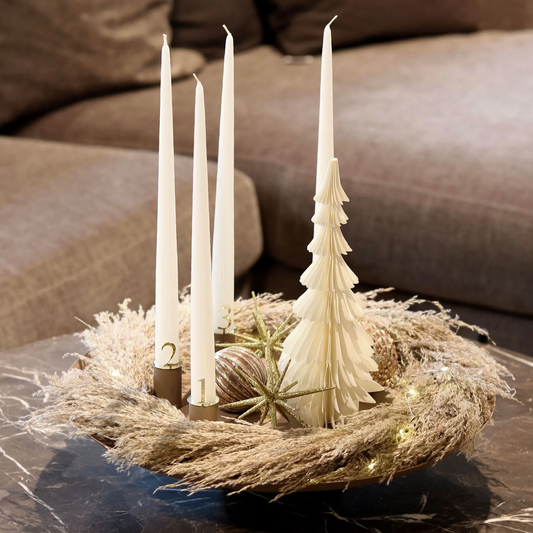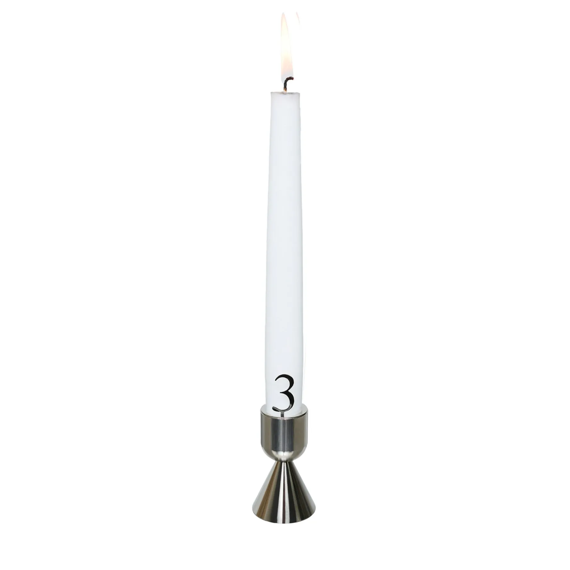 Pakken indeholder fire elegante lysestager, hver nummereret fra 1 til 4, hvilket gør dem ideelle til brug som adventslys. Hver søndag i advent kan du tænde et nyt lys og lade nedtællingen til julen begynde.