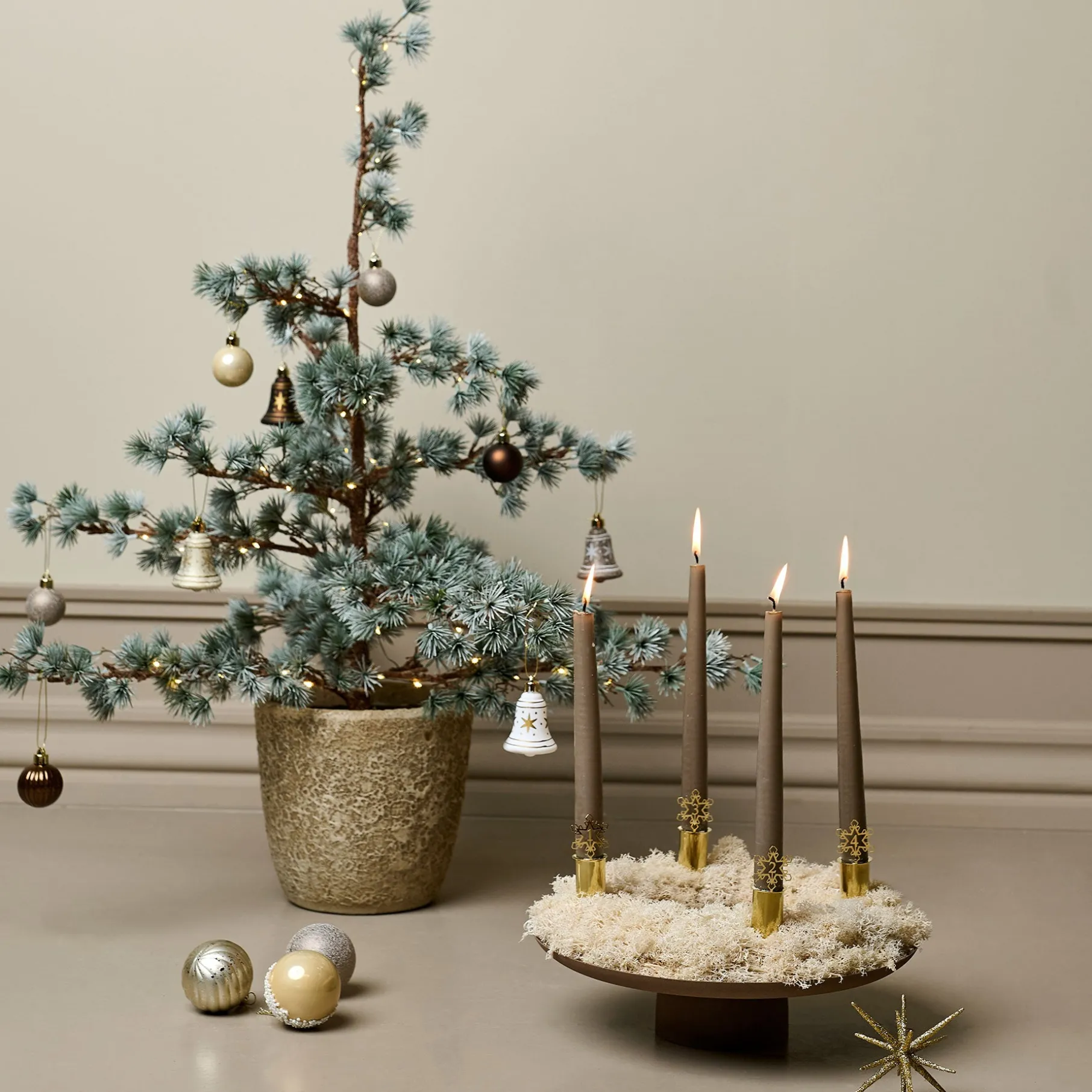 Lysestagerne er lavet af holdbart metal, der både er stilfuldt og robust. Placer dem på bordet, i vindueskarmen, eller som en del af din adventsdekoration for at skabe en helt særlig julestemning.