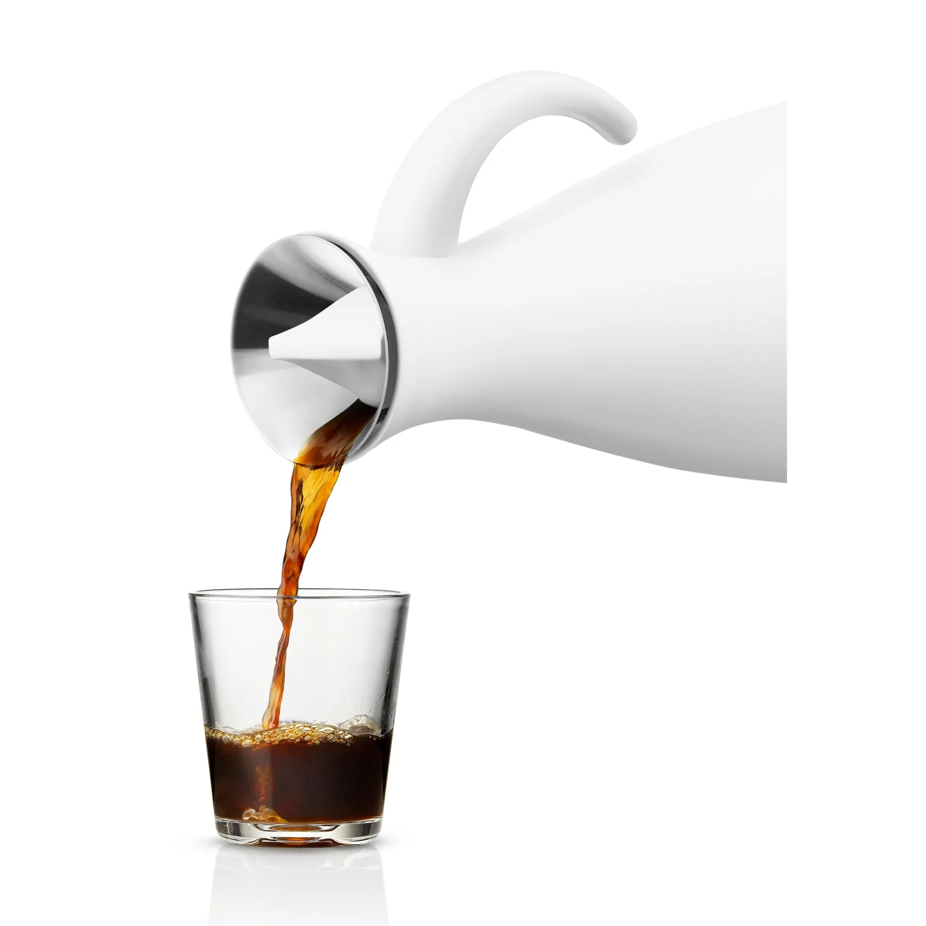 Eva Solo termokande har en garanteret drypfri hældekrave, der er produceret i rustfrit stål. Termokanden er lavet af kunststof udvendigt og glaskolbe indvendigt. En moderne udgave af en klassisk termokande, som fungerer perfekt i praksis.