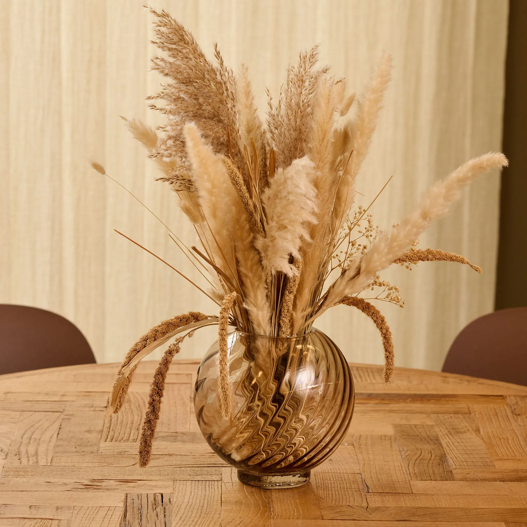 Vasen er kendetegnet for sin tvistede struktur, som på elegant vis følger vasens runde form.
