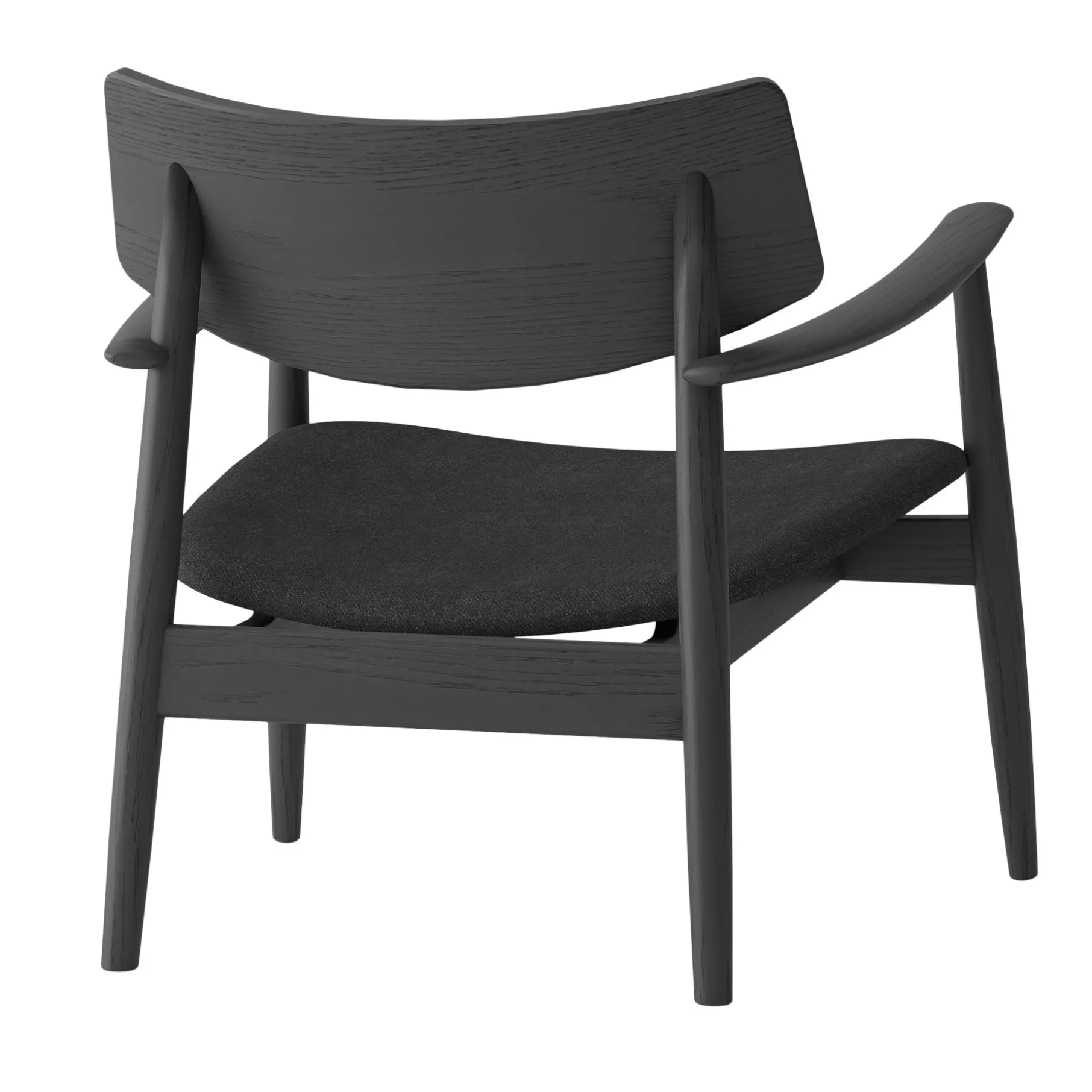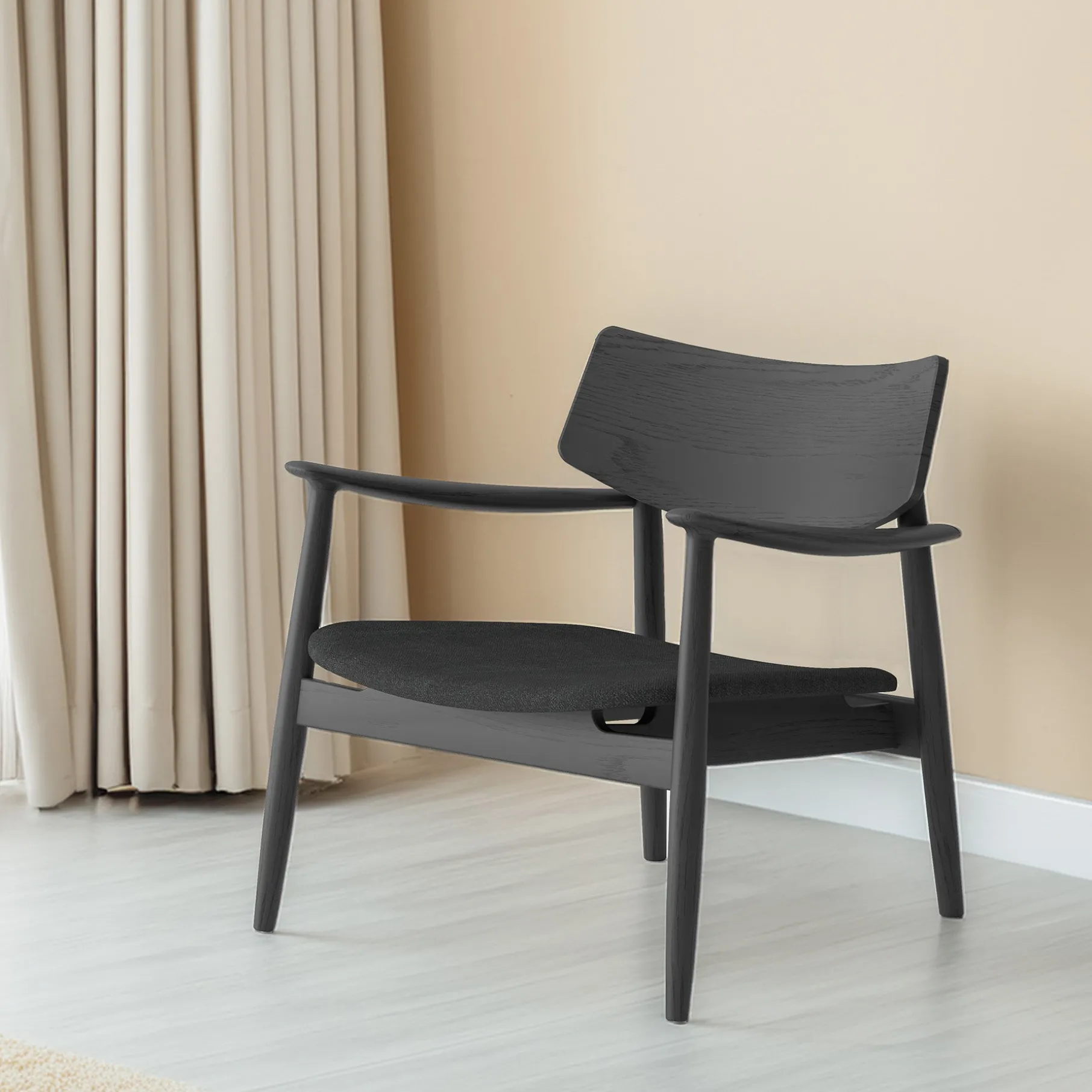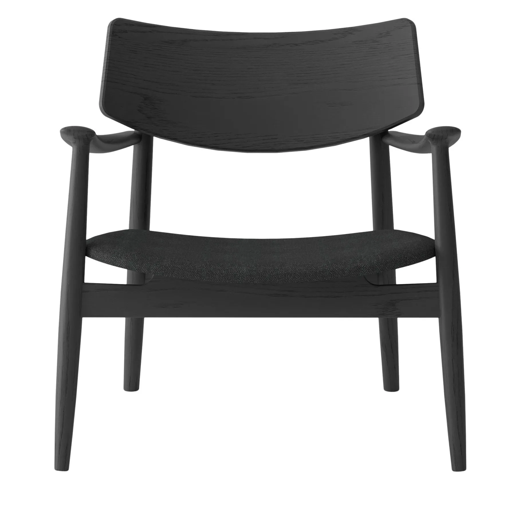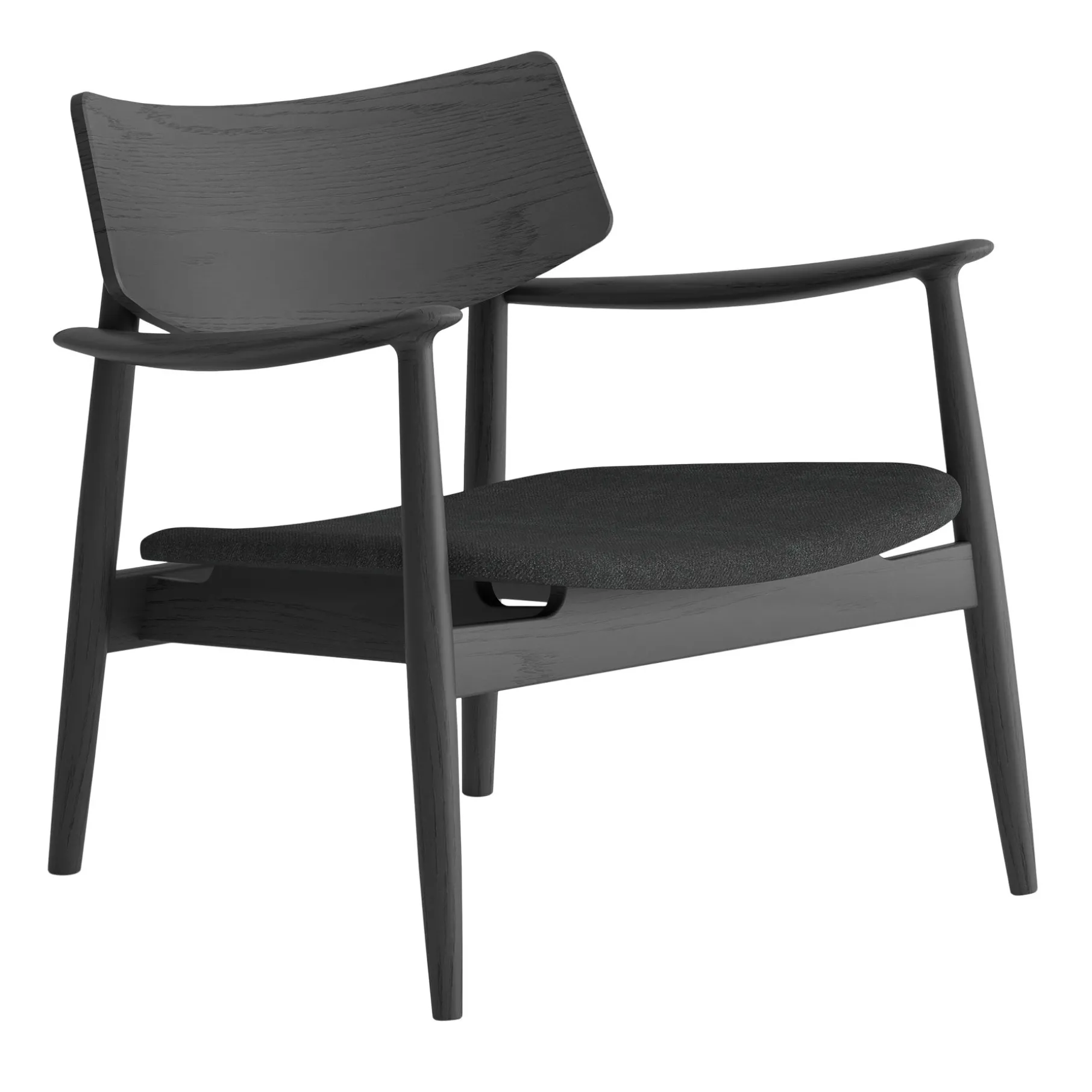 Loungestolen er designet med bløde og afrundede former, som i kombination med det massive egetræ, skaber et klassisk og tidløst møbel. Sædet på denne loungestol er polstret med beigefarvet stof med en let struktur. Ryglæn, armlæn og sædets udformning omfavner dig, så du kan sidde komfortabelt med stil.