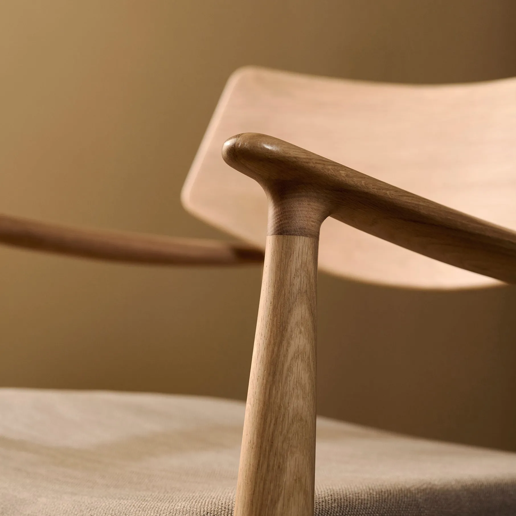 Stolens massive egetræ giver en naturlig varme og skaber et møbel, der holder i mange år. Det lyse, teksturerede stof tilføjer et tidløst udtryk, som gør, at Vedersø vil tilføre varme og karakter til din indretning.