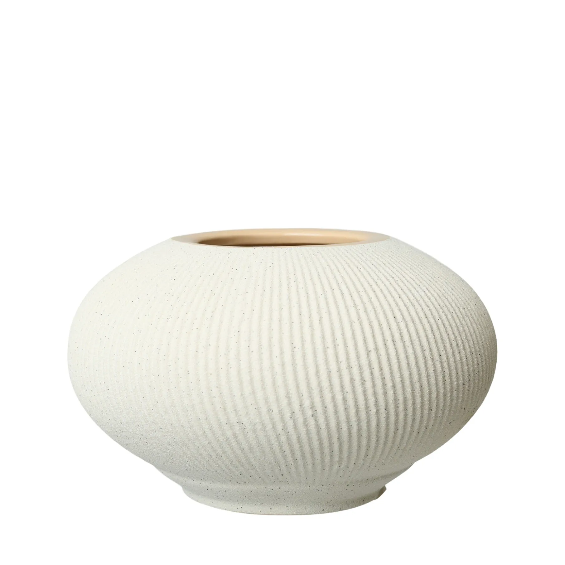 Vase i keramik med rillet struktur. Materialet har en lækker sandblæst overflade.