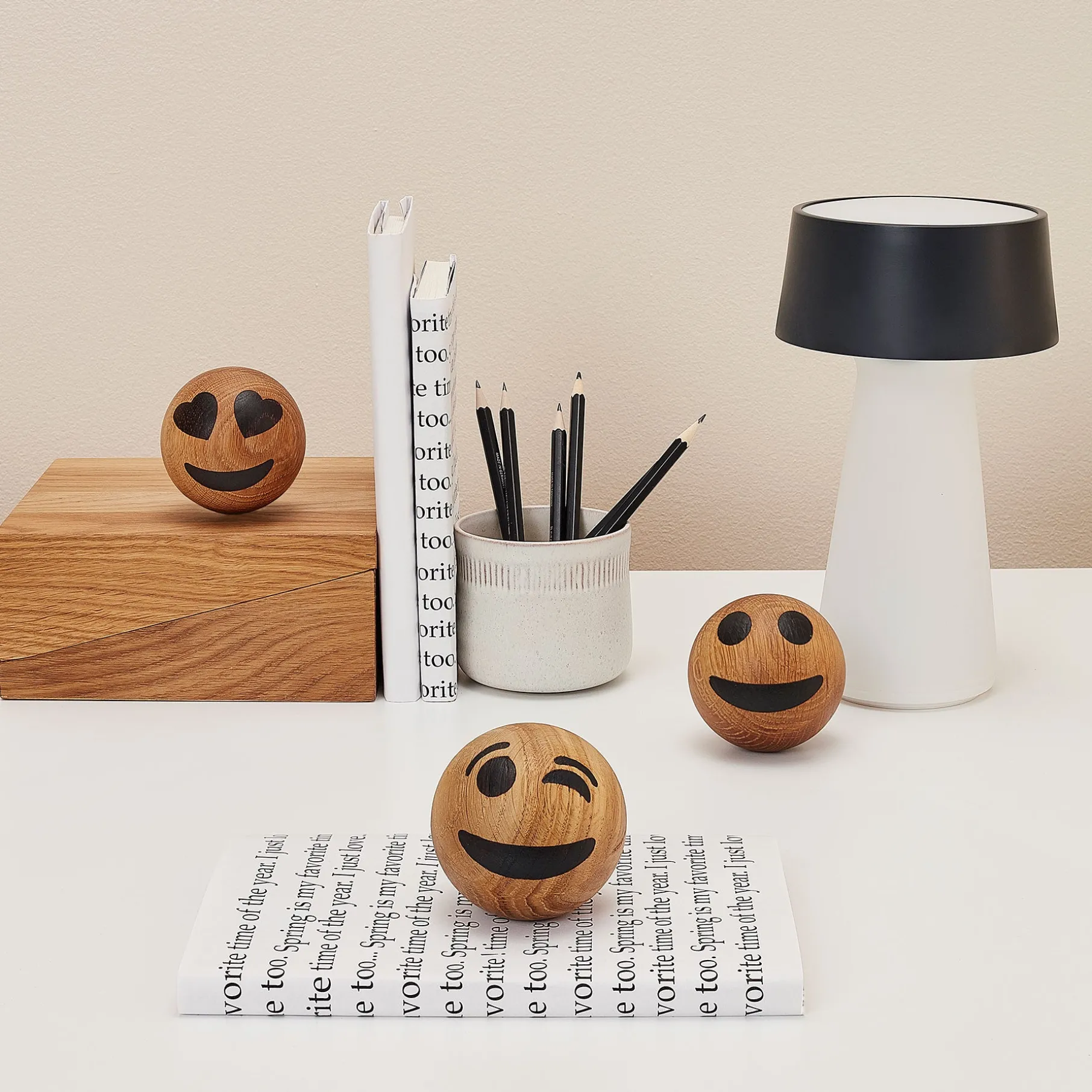 Winking er en unik dekorativ genstand, der består af en rund trækugle med et sjovt aftryk af et blinkende ansigt. Denne sjove og quirky genstand vil tilføje et strejf af personlighed til dit hjem eller kontorindretning. Det enkle design gør det til en alsidig dekorativ genstand, der kan placeres på en hylde, et bord eller hvor end du synes det passer ind. Hvis du leder efter en sjov og unik måde at udsmykke dit hjem på, kan dette være det perfekte valg for dig.