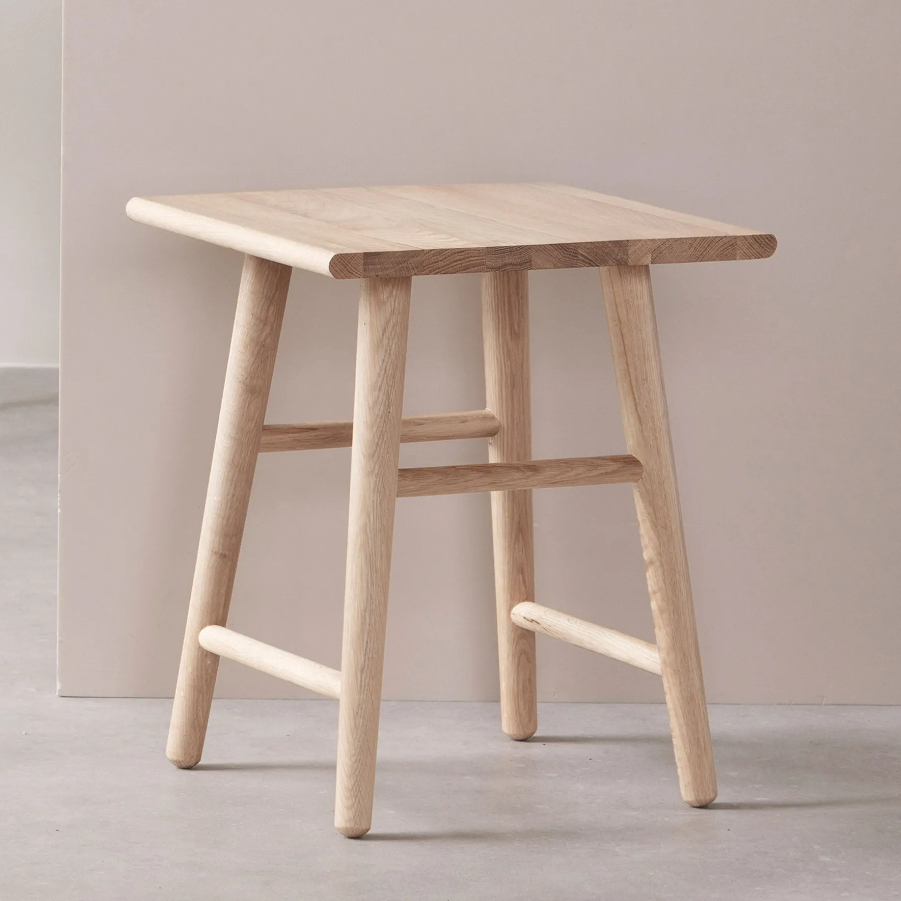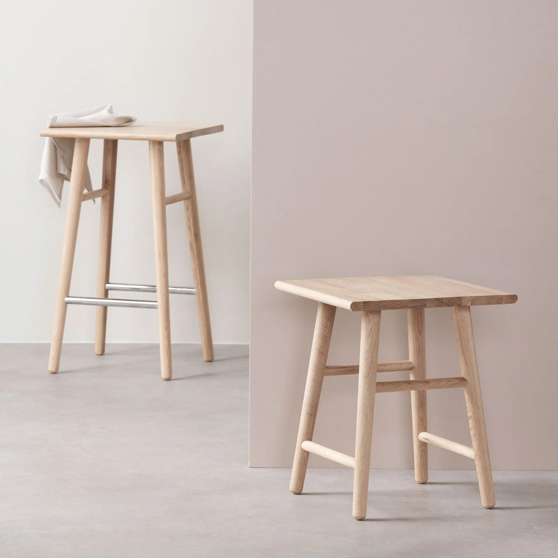 Taburetten er lavet i hvidpigmenteret FSC certificeret egetræ. Egetræets tilføjer naturligt element til indretningen.